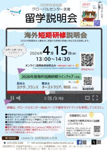 【日時】2026年4月15日(水)13:00~14:30 海外短期研修説明会